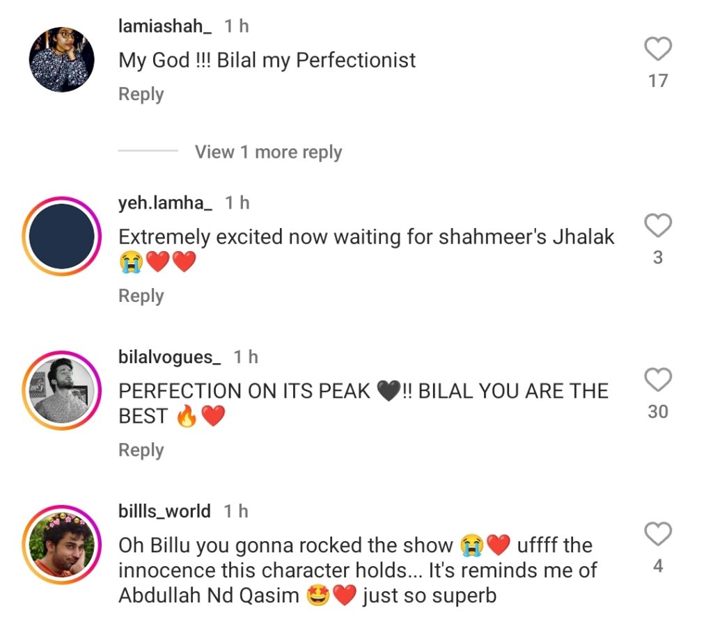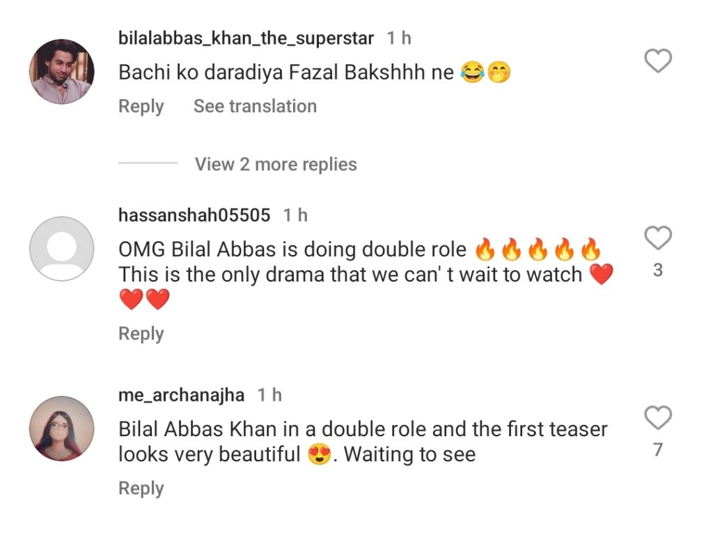 Fans are also thrilled to witness the return of Bilal Abbas Khan and Durefishan Saleem to television screens, expressing their desire to see the two actors together again. The comments reflect the excitement and anticipation among their followers.