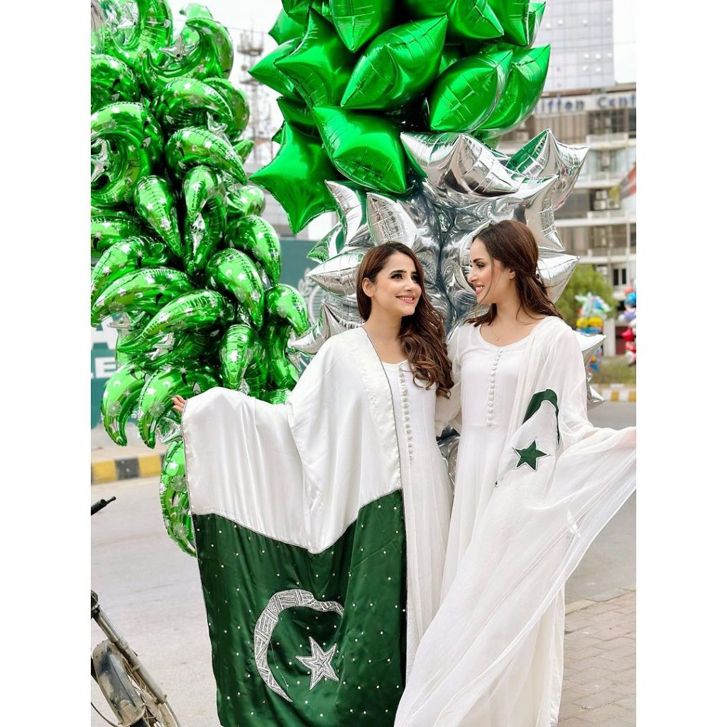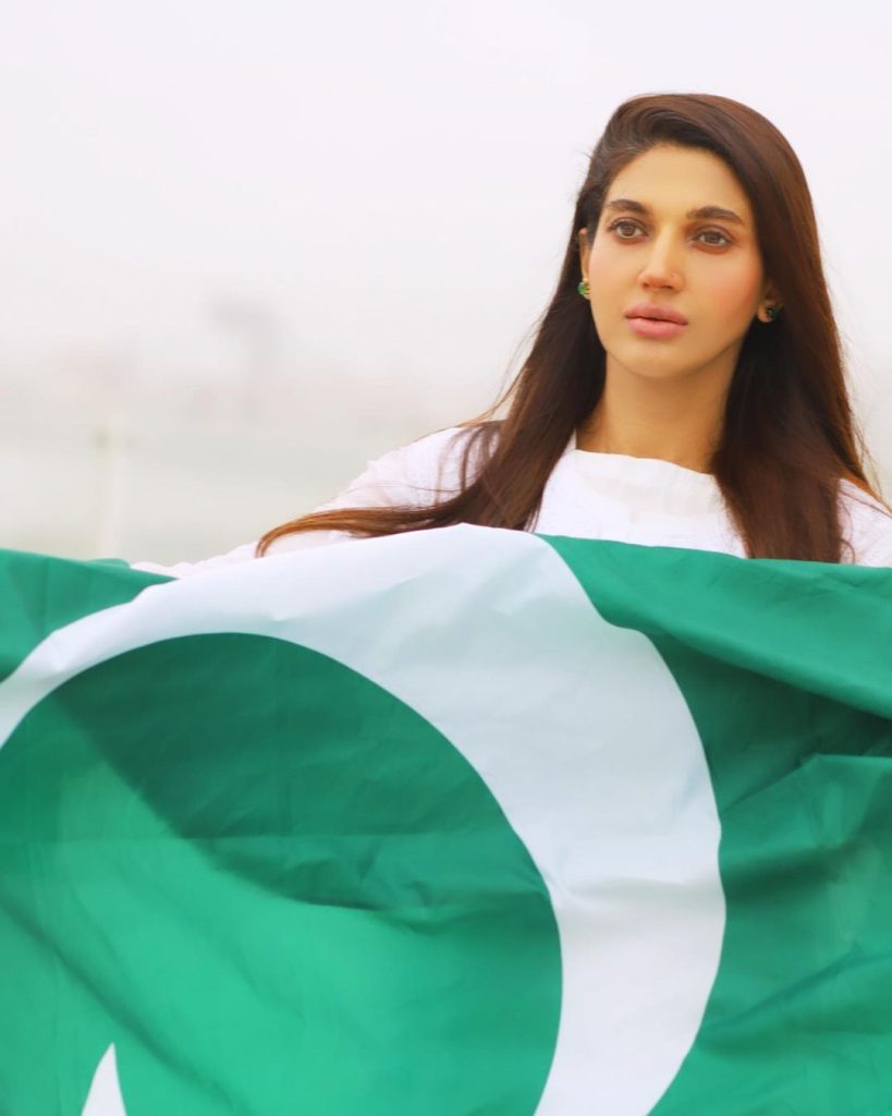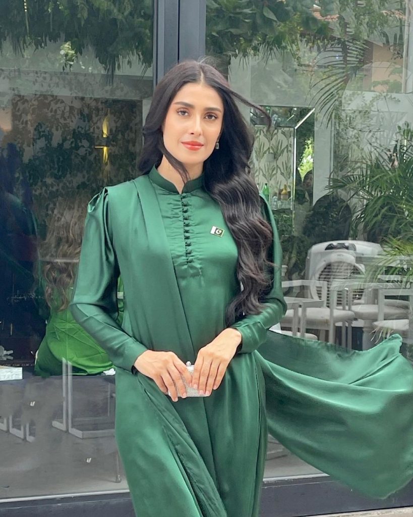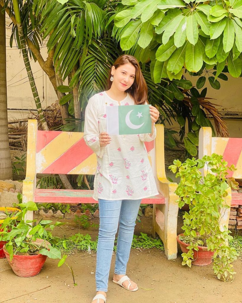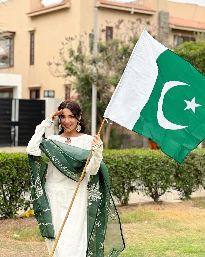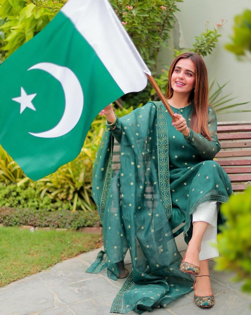 Not only ordinary people but Pakistani celebrities are also enthusiastically joining the Independence Day celebrations. They’re sharing photos of themselves dressed in green and white, the national colors. Have a look at some of your beloved celebrities as they commemorate the 77th Independence Day.