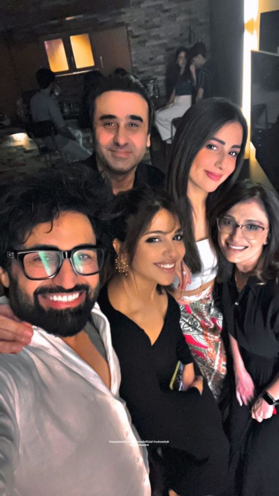 Last night, a delightful dinner and jamming session occurred at Wajaht Rauf’s place, bringing together several of our beloved celebrities. Sonya Hussyn was among the attendees and shared some enjoyable photos with her colleagues. The gathering featured Sonya Hussyn, Hania Aamir, The Raufs, Ushan Shah, Yashal Shahid, and other talented individuals.