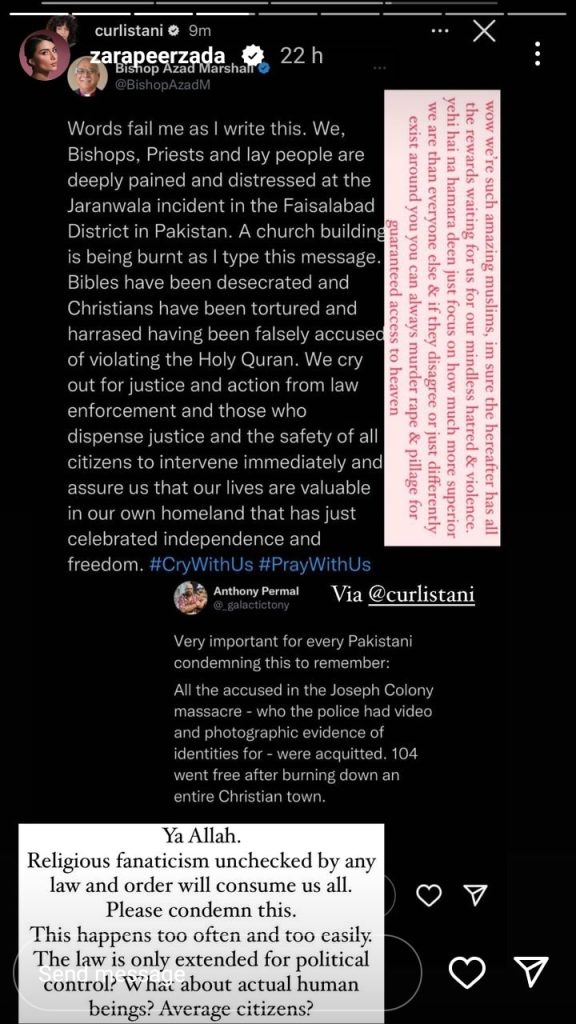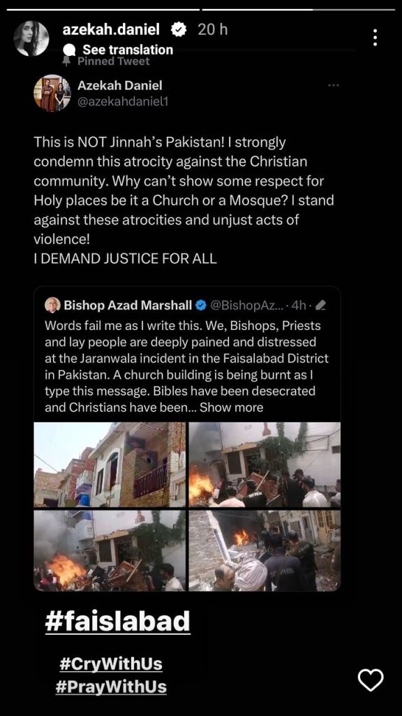 Pakistani Celebrities mourns the incident of Jaranwala Violence