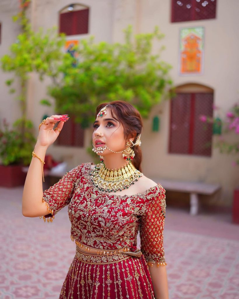 Recently, she did a bridal photoshoot where she looked absolutely enchanting in the traditional red and gold attire.