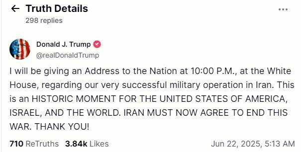 Washington D.C: In a momentous turn of events, US President Donald Trump addressed the nation following a joint operation with Israel, launching significant attacks on Iranian nuclear facilities.