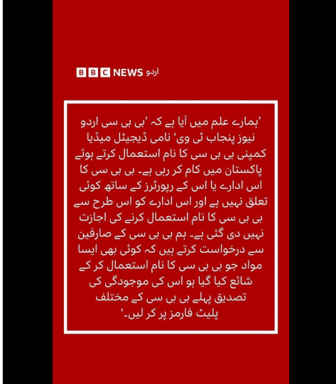 BBC Urdu issued an official statement, firmly distancing itself from the digital media outlet: