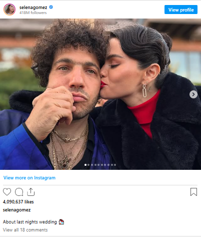 Selena Gomez and Benny Blanco share a sweet kiss at Lil Dicky’s wedding