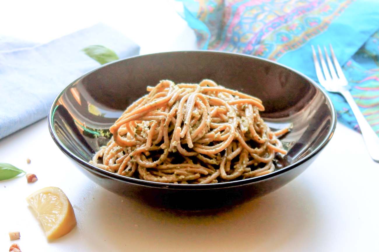 Whole Wheat Spaghetti With Avocado Basil Pesto.