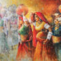 A viewer is not only met with pleasing visuals but is taken on a journey amidst these lively personas, eventually taking in the gush of striking beauty these paintings aim to deliver. Moazzam Ali’s skill in representing such a feeling for his audiences remains unparalleled, brought to perfection by decades of experience and skill.