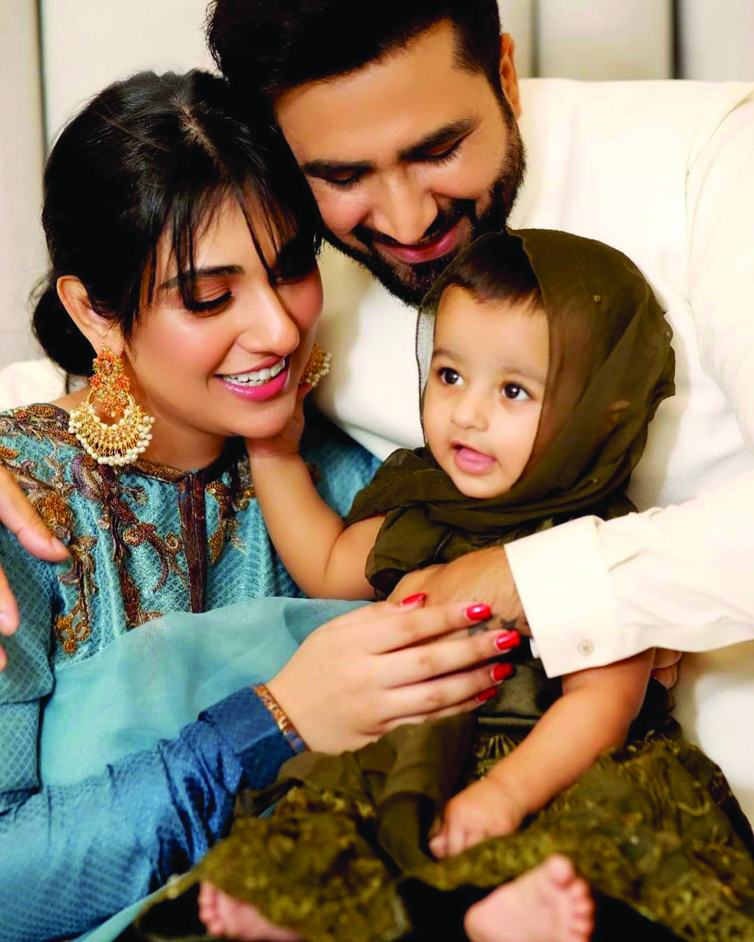 “I think when a woman becomes a mother, she gets a special strength at the same time. God has made a woman so strong and powerful that she manages it all. My daughter keeps wide awake all night literally. So, I am sleep deprieved all the time. But here I would mention that if your spouse is supportive, things are managed with much ease. Falak supports me at every moment(s) in life. If I ever have a son, I wish he would entirely walk in the footsteps of his father.”