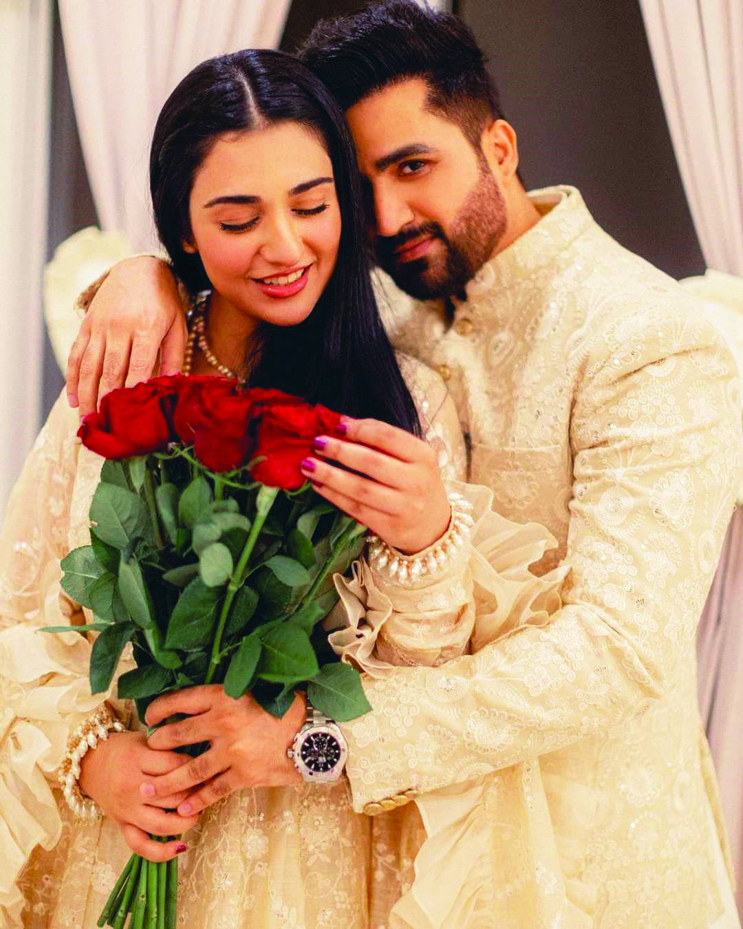 As there is an actor and a singer under one roof, have you ever considered trying some singing with him? Sarah smiled softly in her signature style and admitted that they both had been offered projects by renowned brands and platforms to sing together but she was not ready for that at that moment. “I believe, acting and singing are two very different fields. It is very rare that an actor is similarly good at singing as well. I have always wanted to do acting so I should not plunge into things in which I am not expert in or have learned. So, at the moment, I am not interested in singing.”