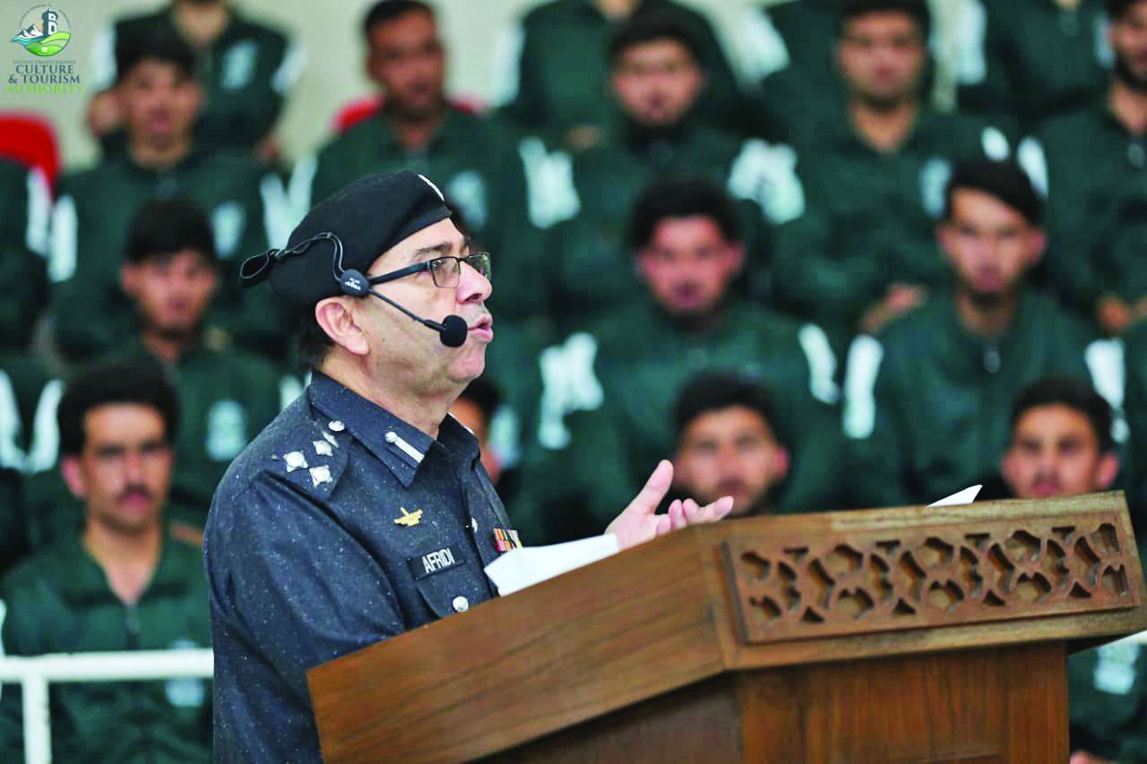Commandant Gul Said Afridi lauded the zest and zeal of new recruits and urged them to gird up for an outstanding job to set an exalted example of ‘courage, service and sacrifice’ for the other provinces and tourists from other countries.