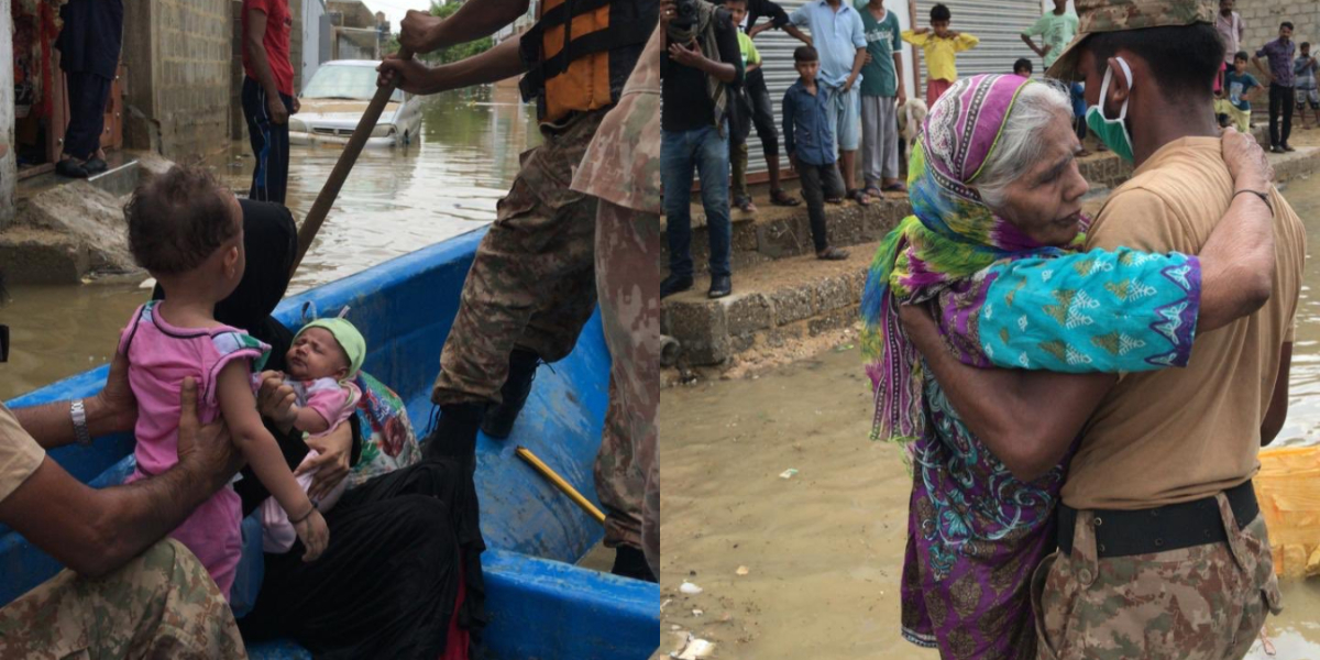 On Saturday, the Pakistan army contingent reached the Central District to rescue people from their homes.