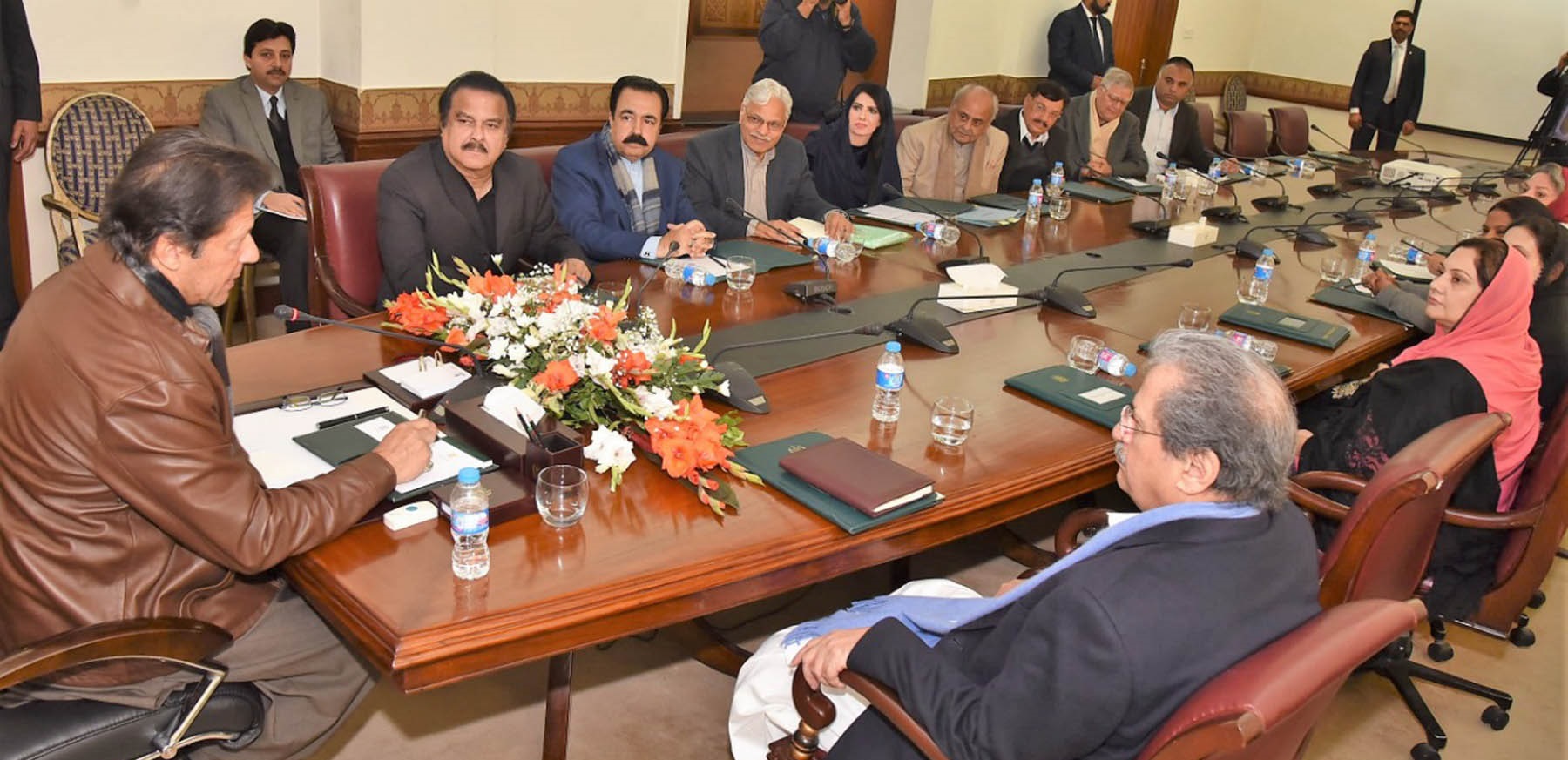 Prime Minister Imran Khan in a meeting with PTI Members of National Assembly from Lahore and Sahiwal Divisions, at PM Office in Islamabad on January 7, 2019