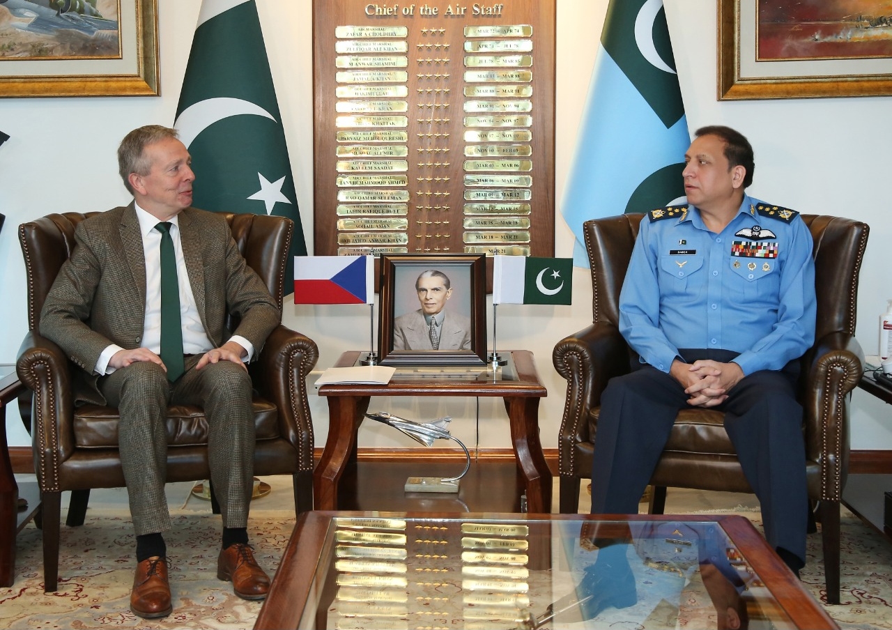Chief of the Air Staff Air Chief Marshal Zaheer Ahmed Baber Sidhu with Ambassador of the Czech Republic Tomas Smetanka at his office. Photo: PAF