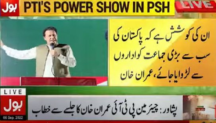 براہ راست دیکھیں: https://t.co/7PN6qbA9Hd#ImranKhan #PTI #Peshawar #PTIJalsa #BreakingNews #BOLNews@samiabrahim pic.twitter.com/DPJC9GGgcW— BOLNetwork (@BOLNETWORK) September 6, 2022