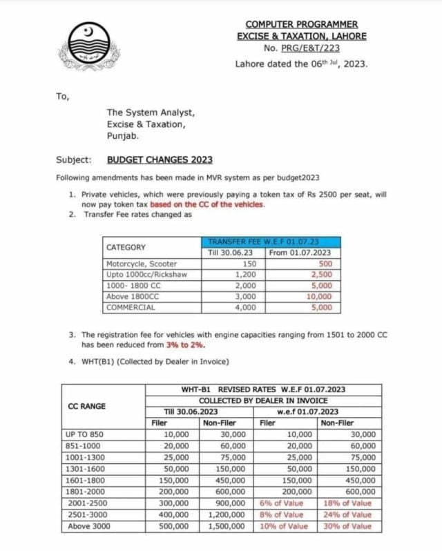 The vehicle transfer fee in Punjab has been revised with the implementation of the new budget for 2023-24, as announced by the Excise and Taxation Department. The revision applies to all types of vehicles, including motorcycles, scooters, cars, and rickshaws. The new vehicle transfer fee came into effect on July 1, 2023.