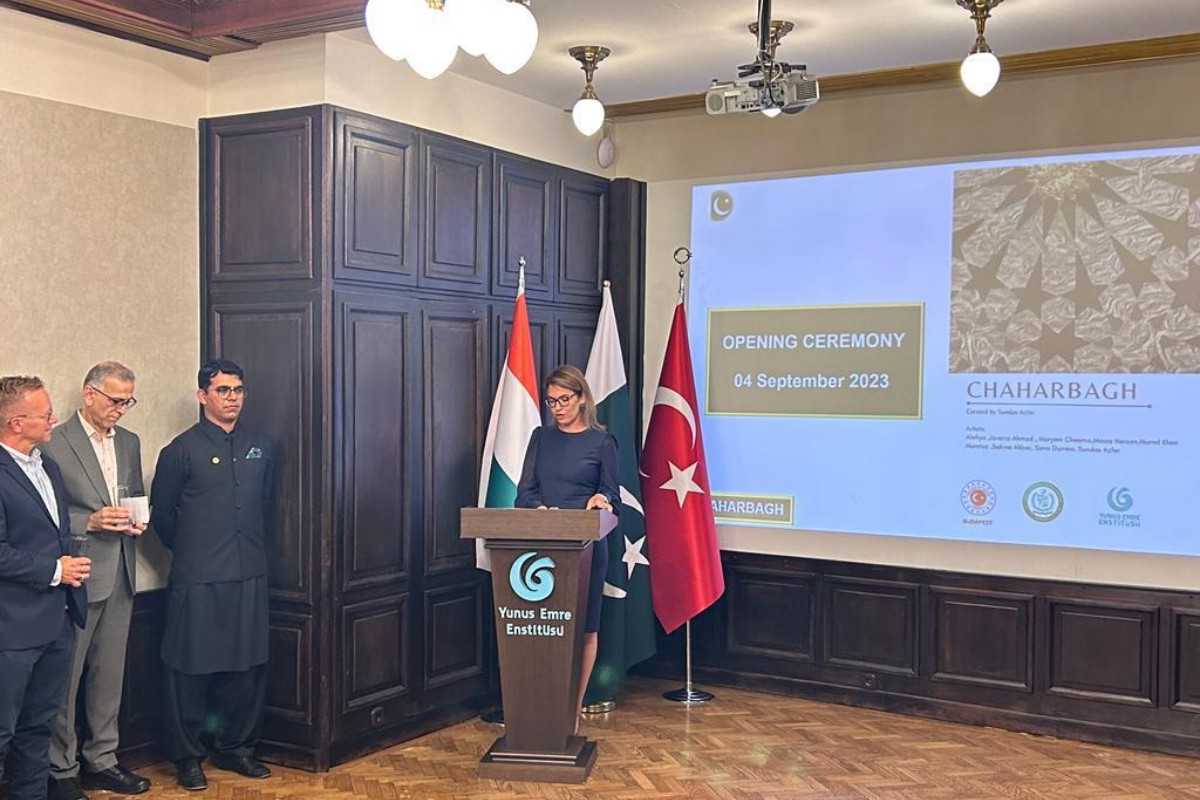 The exhibition titled “ChaharBagh” (Four Gardens of Oaradise) showcased the artwork of eight Pakistani artists. Organised in cooperation with the Embassy of Turkiye in Hungary and Yunus Emre Institute, the exhibition will continue till September 8.