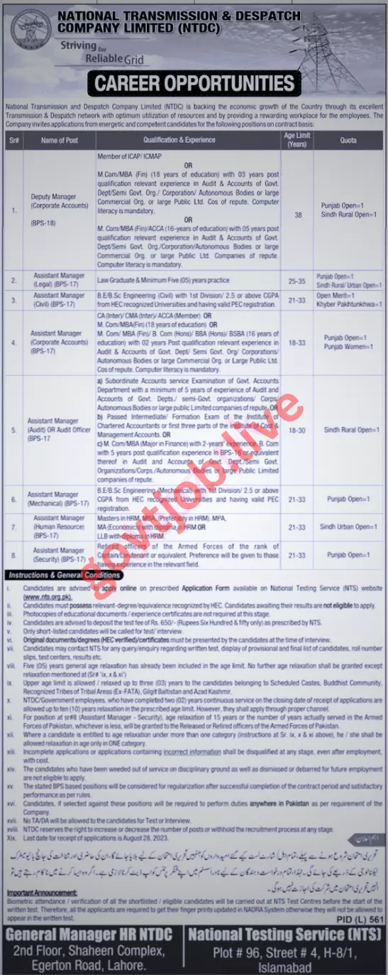 The NTDC’s job advertisement, published in the esteemed Jang Newspaper on August 13, 2023, features a range of enticing positions, including: