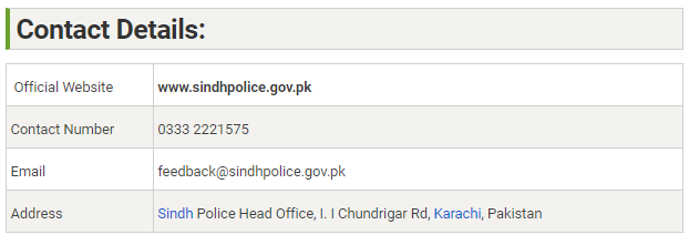 Address: Inspector General of Sindh Police Department, Karachi, Sindh, Pakistan