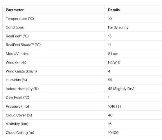 The RealFeel® temperature is slightly warmer at 15°C compared to the actual temperature. The RealFeel Shade™ temperature is 11°C, offering a comfortable outdoor environment.