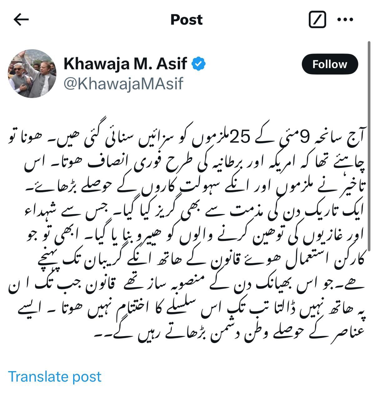 Khawaja Asif calls for action against masterminds behind 9th May riots