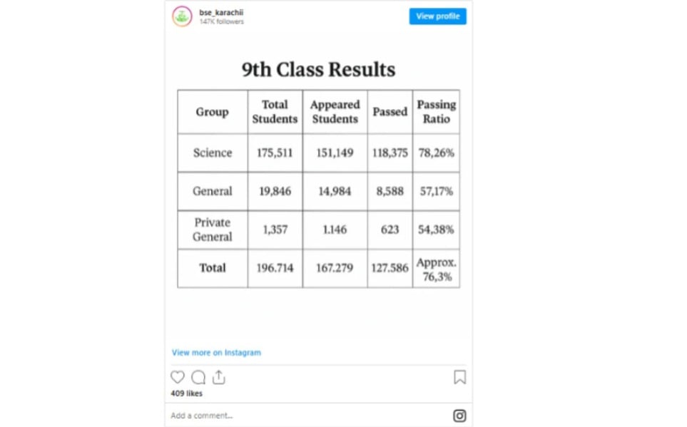 Students from the Science Group continued to show strong performance, keeping up the board’s record of better results in science subjects. The solid outcomes indicate steady academic progress across schools in Karachi.