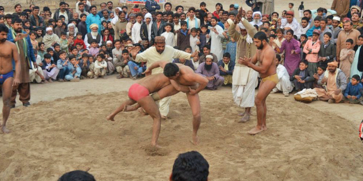 The terms kushthi and phelvani are expressions derived from Persian words. Locally known as dangal, the competitions of mud wrestling are organised on Fridays. Different wrestlers participate in it and dance to the tune of drums after winning. Titles are awarded to the wrestlers who conquer home and aboard. Rustam-i-Zaman, Gamma Phelwan, Rustam-i-Hind, Ustad Raheem Bukhsh, Zubair Jhara, Nasir Bhola Bhala, Inam Phelwan, Bashir Phelwan and Umair Phelwan are a few acclaimed wrestlers.