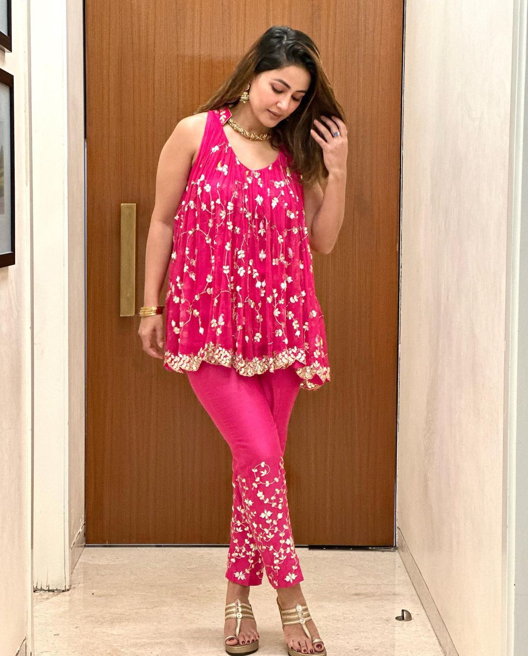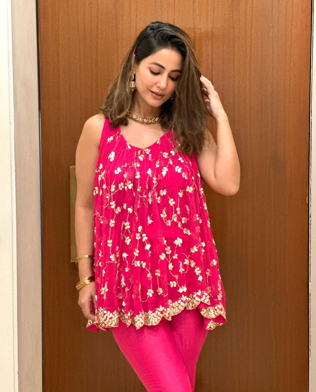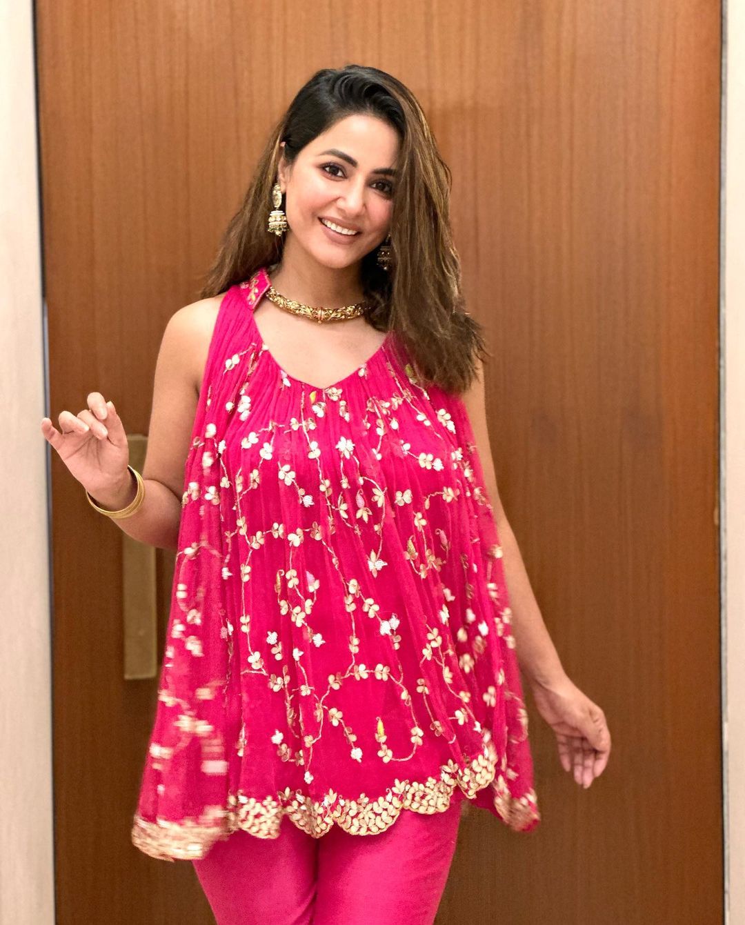 Hina Khan keeps her fans entertained with her beautiful and eternal photoshoots. The Yeh Rishta Kya Kehlata Hai actress dropped new pictures on Instagram which left the temperature soaring high. However, her outfit in the latest set of pictures is rather different.