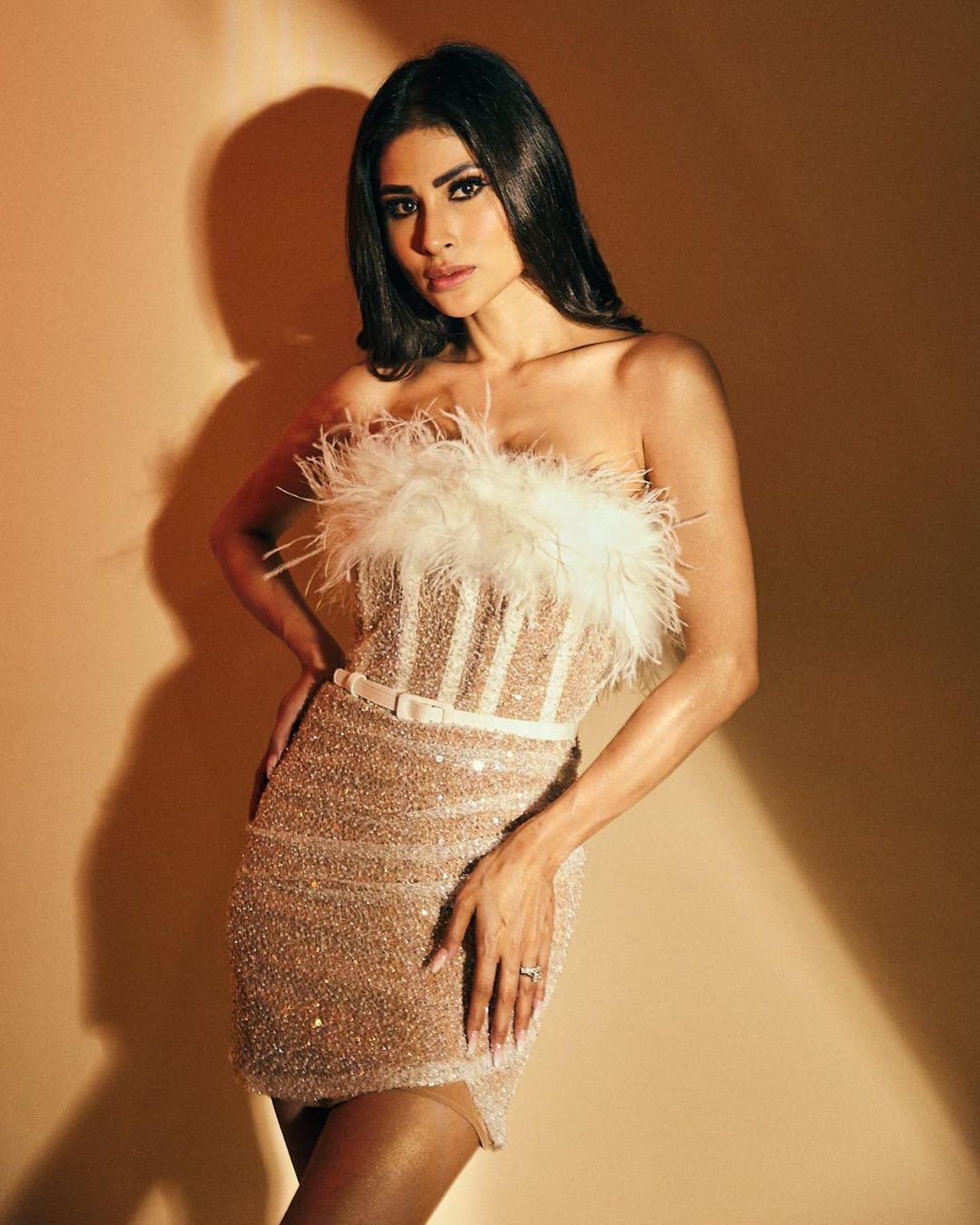 Mouni Roy was stunningly hot as she wore a chic white embroidered bodycon, sported a diamond ring and adorned high shoes with pearl studs.