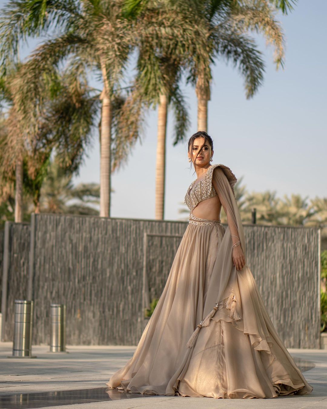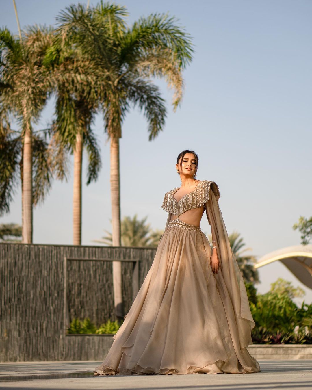 Tejasswi Prakash channels a princess in a beige cut-out gown