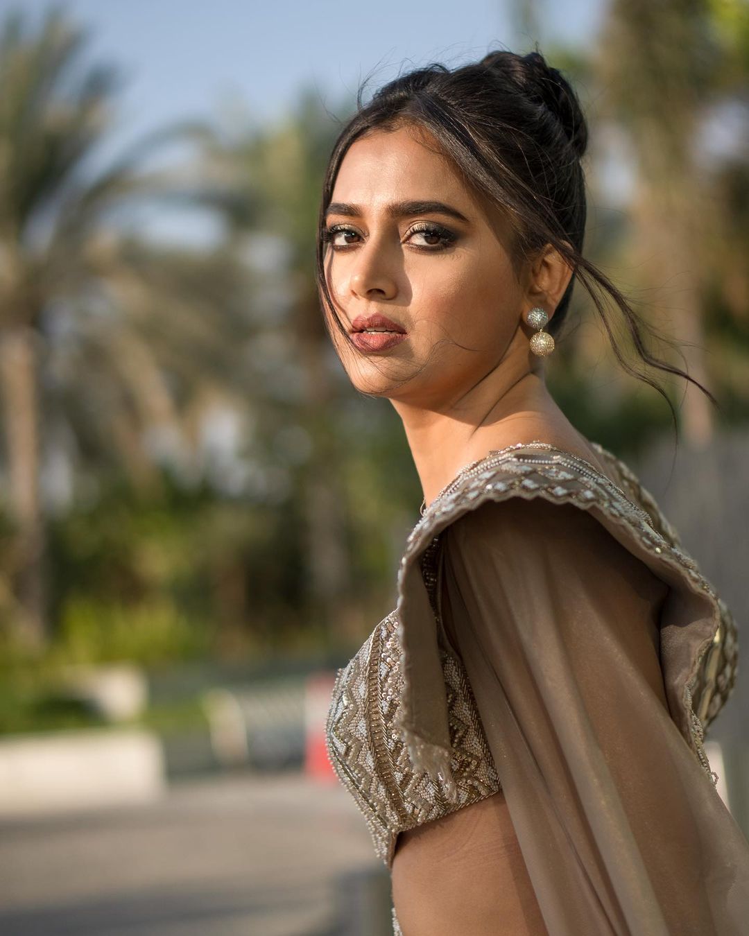 Tejasswi Prakash chose a beige gown, giving off major princess vibes recently. She posted a few pictures of herself on Instagram, showcasing her stunning self. She let her eyes speak for her as she wore a dreamy outfit with bare, glowing makeup.