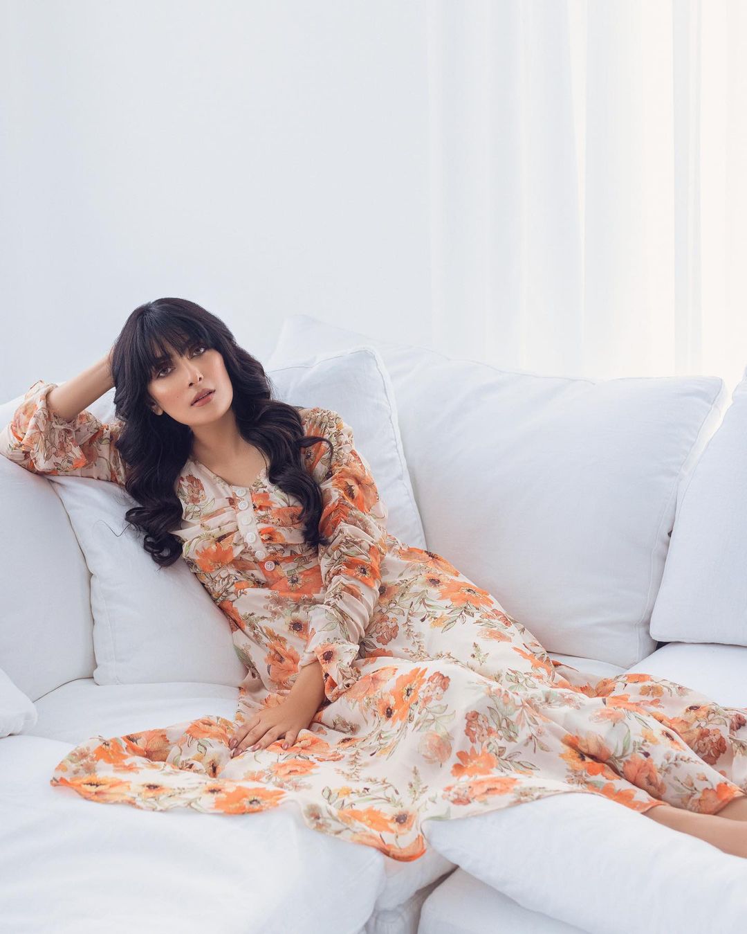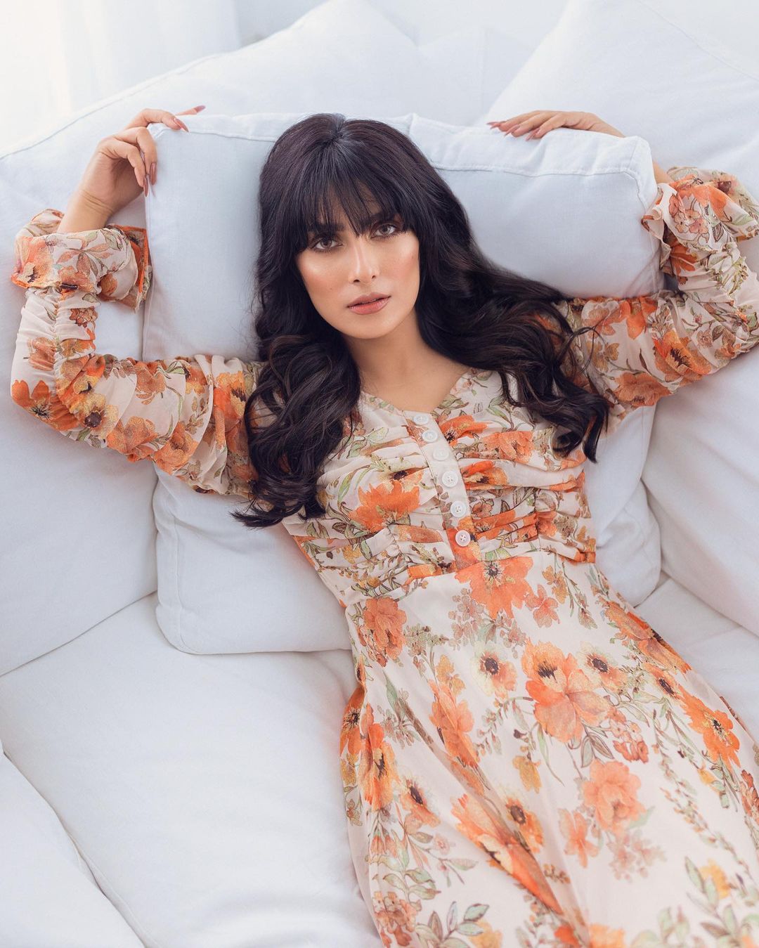 Ayeza Khan recent photoshoot in the Orange Dahlia Dress