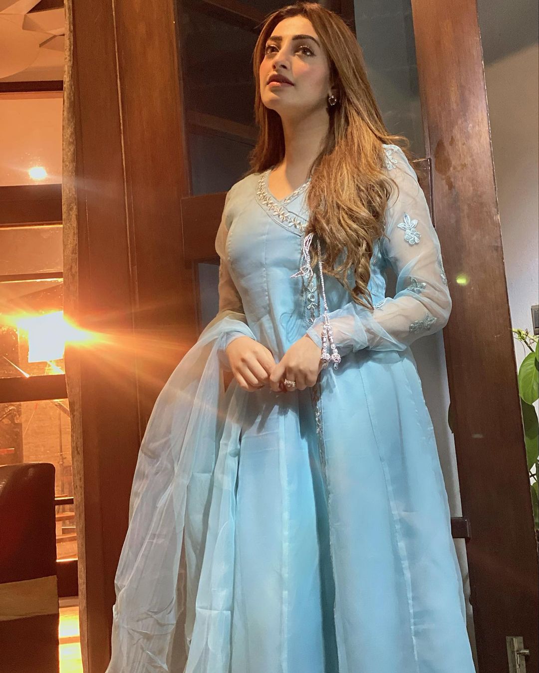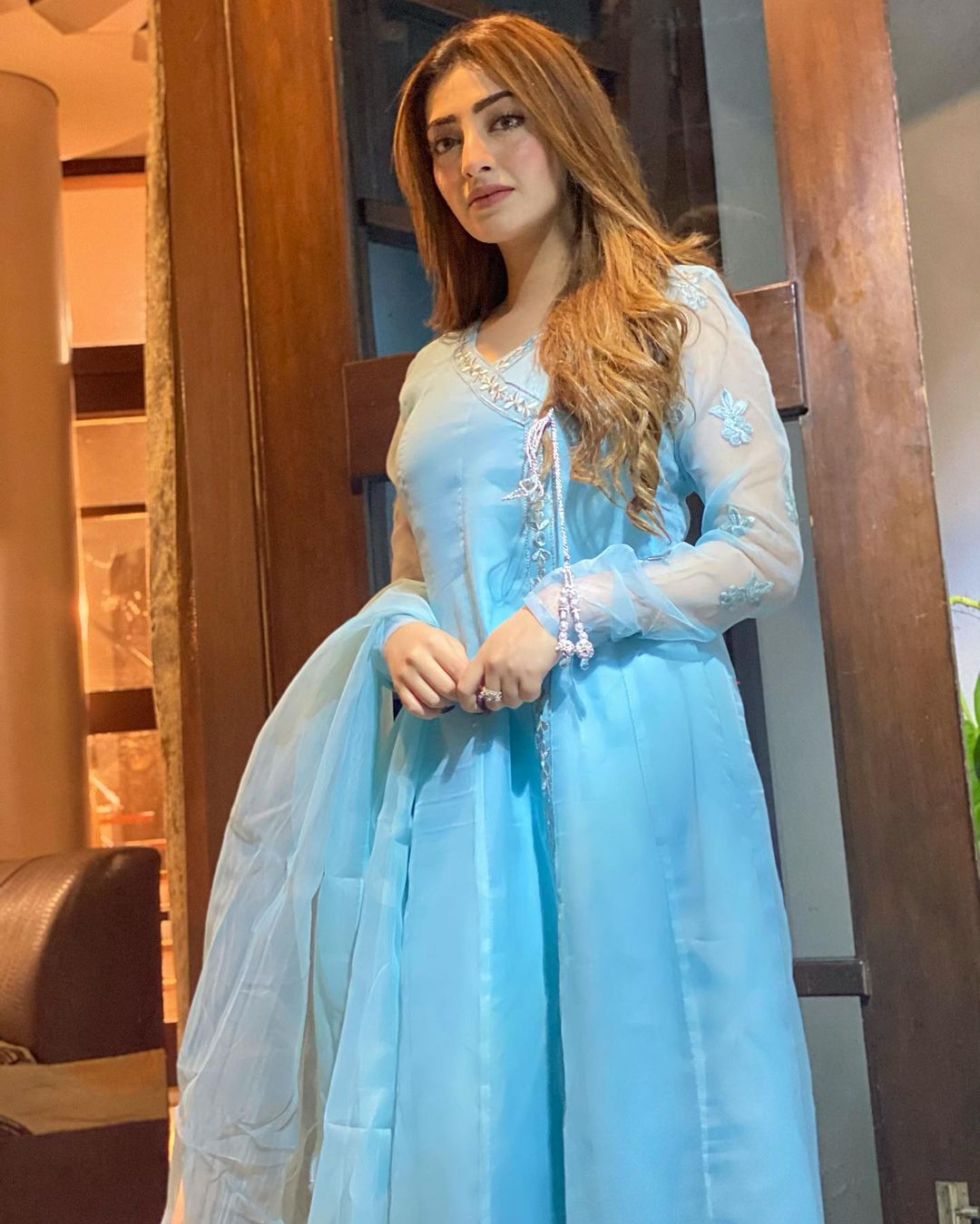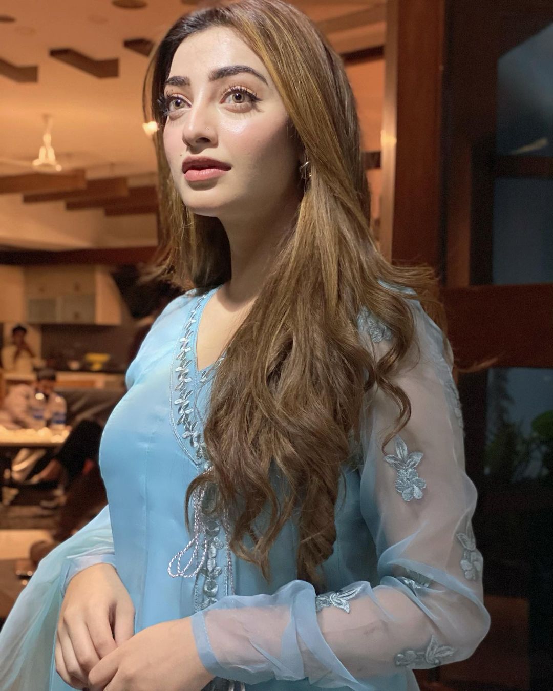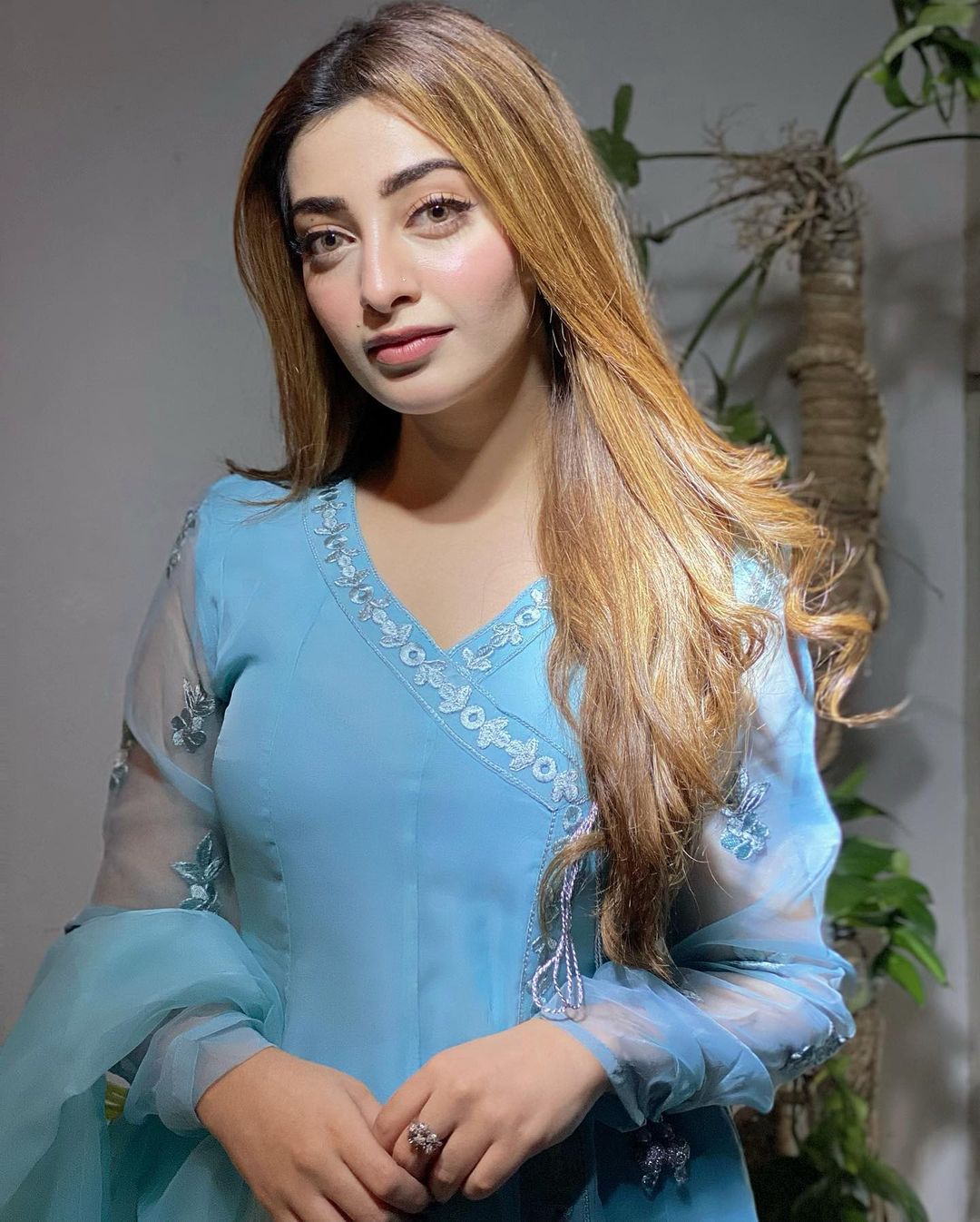 Nawal Saeed has shared some fresh clicks on her Instagram handle and people are extending love for her. Her hair and makeup enhance her natural attractiveness. The viral pictures see her posing for the camera in an elegant lilac eastern outfit.
