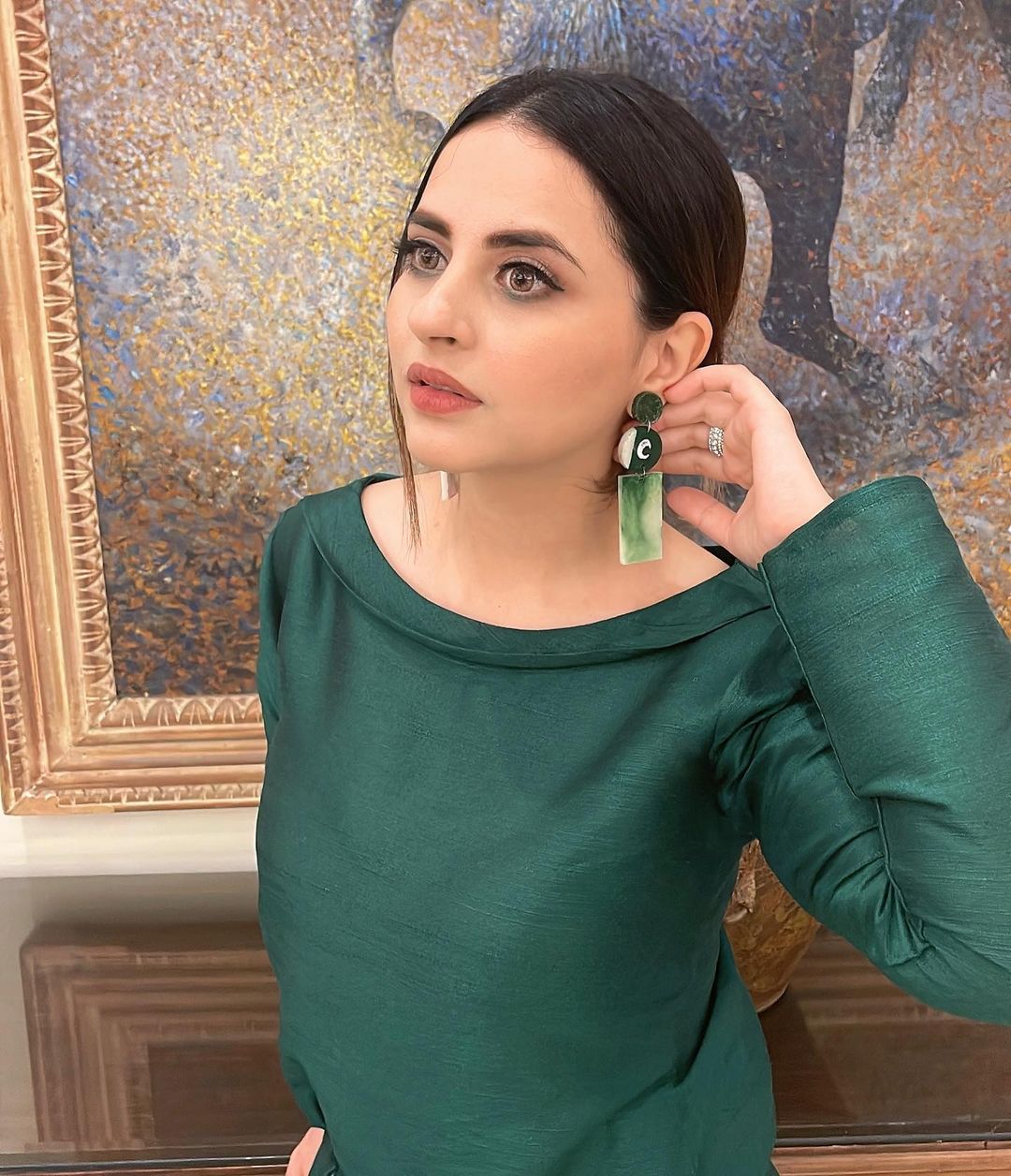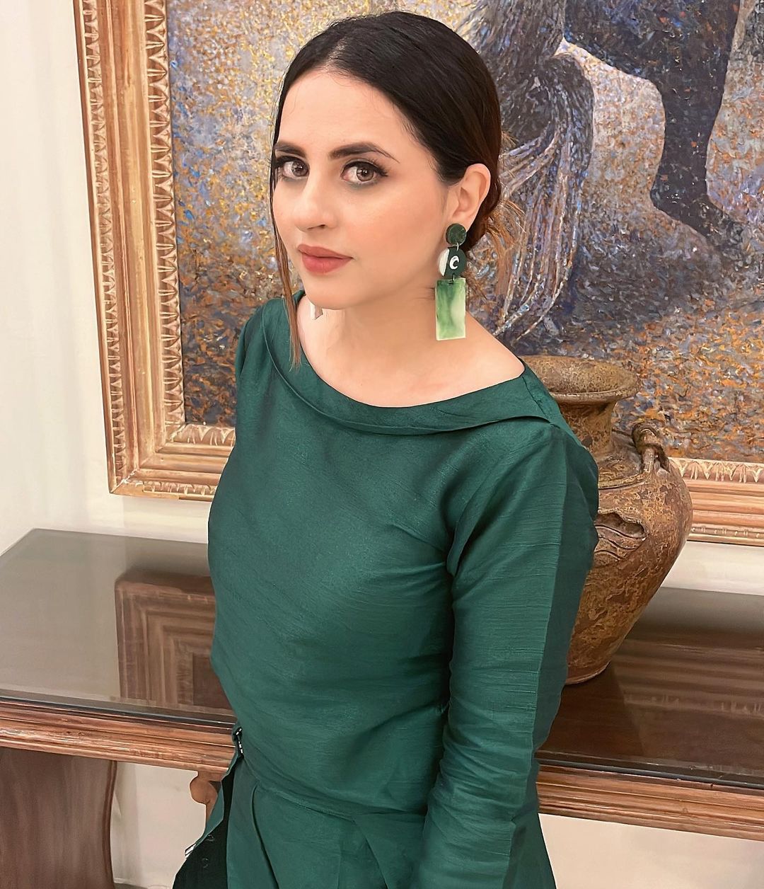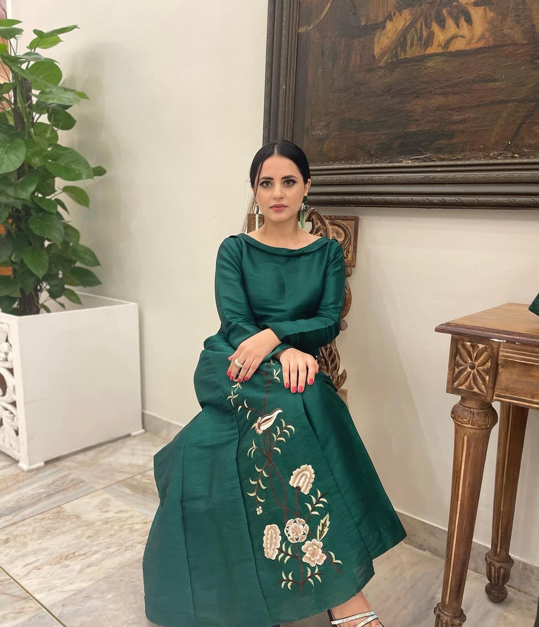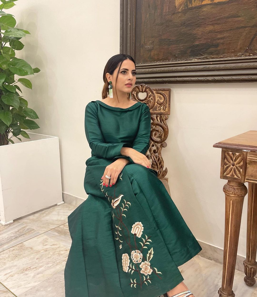 The Jia Na Jaye actress left her fans jaw-dropped when she flaunted her new pictures in a green outfit. Her outfit was perfect with the small amount of jewellery she chose. She posted the caption, “Green is evergreen.”
