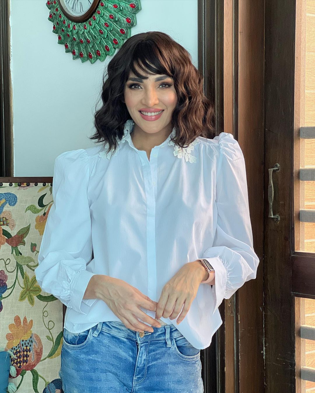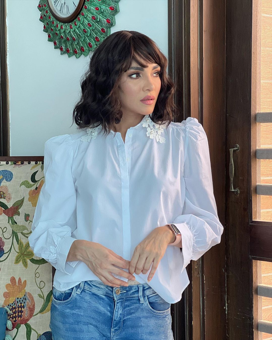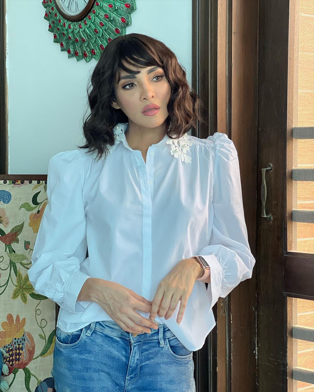 Zhalay Sarhadi is a well-known and versatile Pakistani television actress and model. Recently, she appeared in a beautiful western outfit. Her styling and make-up look flaunt her beauty.