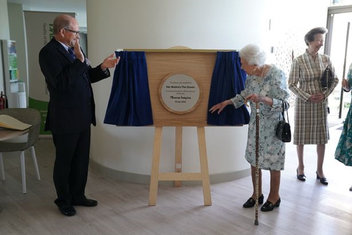 The Queen complimented the structure, expressed interest in the various cancer therapies, and expressed hope that the new structure would support all of the local cancer sufferers, according to his wife.