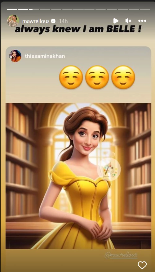 Mawra added the following throughout the image that she shared on her Instagram story: “Always knew I am Belle.”