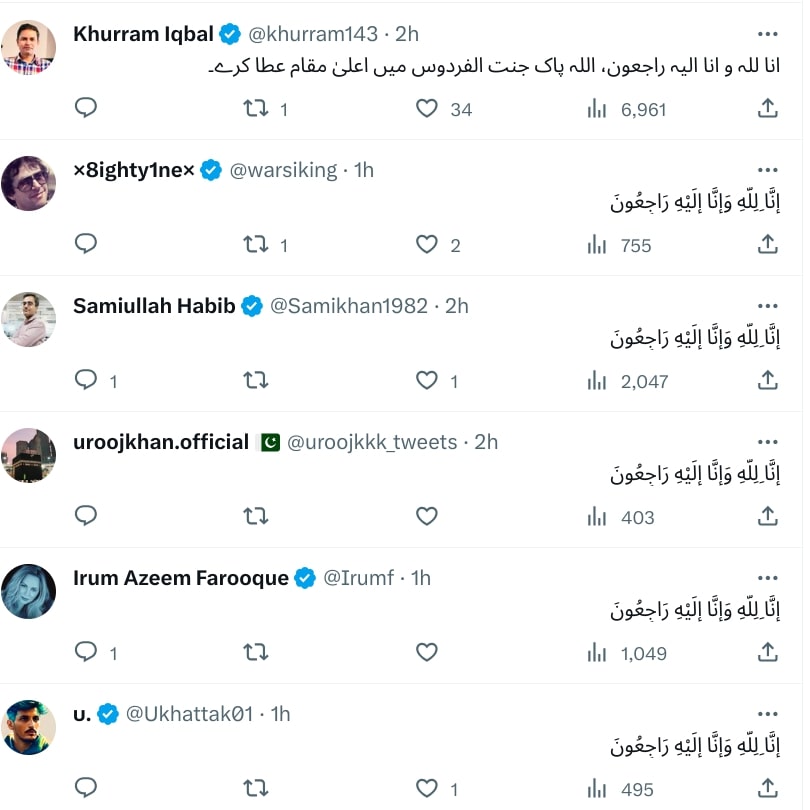 Shahid Aridi’s sister passed away today, and he revealed the heartbreaking news on Twitter. He relayed the sad news of her death and said that funeral prayers will be held at DHA Karachi.