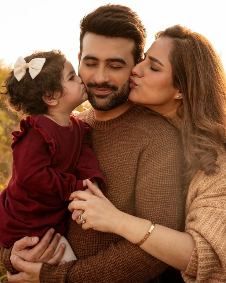 Faizan and Maham share the joy of parenthood with their beautiful baby girl, ensuring that she takes precedence in their lives. Today is a special day for Faizan and Maham as they celebrate both his wife and daughter’s birthdays. To mark the occasion, the celebrity couple shared a stylish photoshoot adding an extra touch of glamour to the festivities.