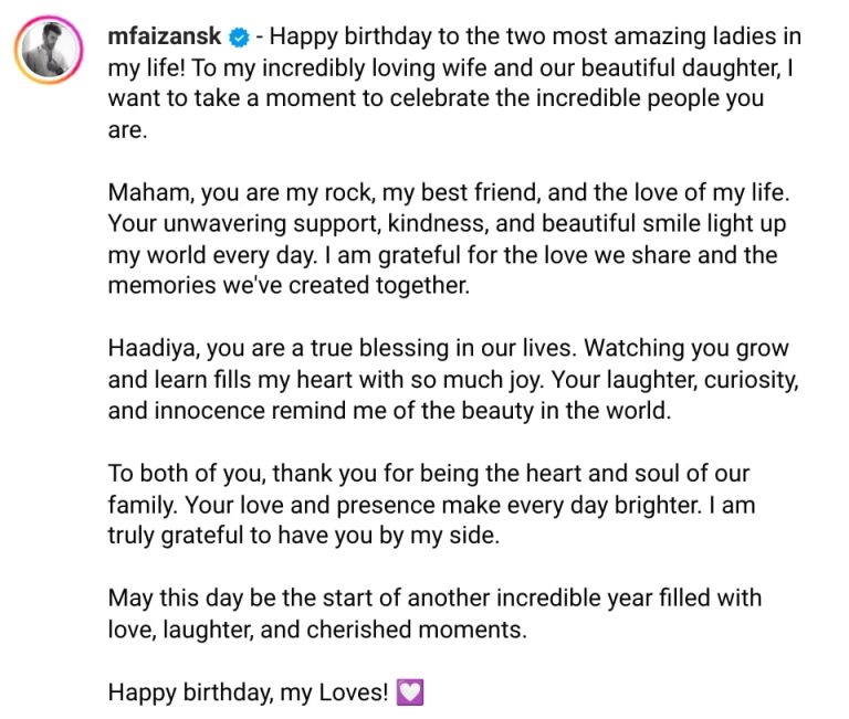 Faizan Sheikh marks wife and daughter’s birthdays with joyful celebration