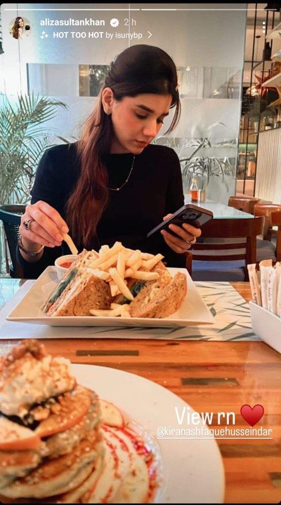 Recently, Kiran Ashfaque and Syeda Aliza Sultan caught the public’s attention with a lunch meet-up. The duo shared glimpses of their time on their Instagram stories, showcasing their simple yet beautiful looks. The pictures shared on Instagram provide a candid peek into their meet-up, leaving followers intrigued.