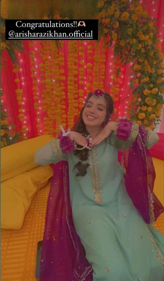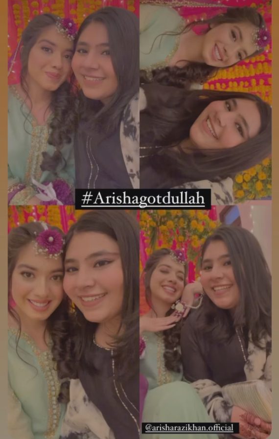 In 2022, Arisha Razi tied the knot with Abdullah Farrukh, creating a buzz on social media. Recently, the wedding festivities commenced in Karachi, starting with an intimate Dholki event organized by her family. Arisha shared pictures from the event on her Instagram stories, capturing the joyous moments.