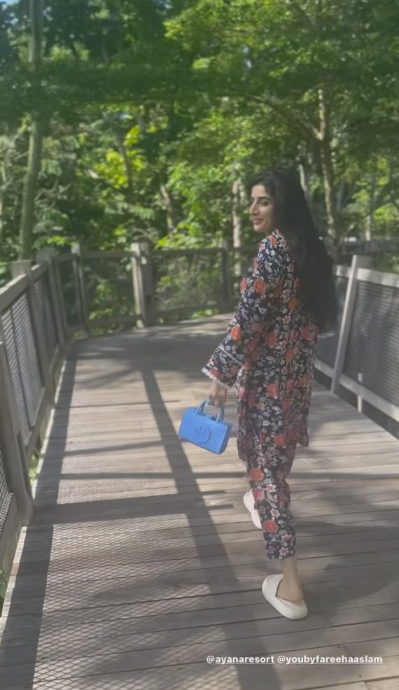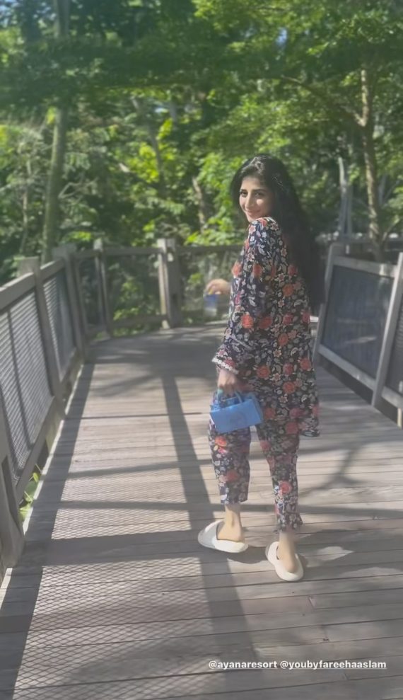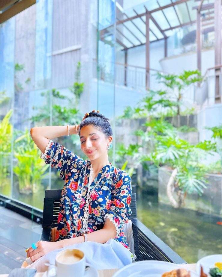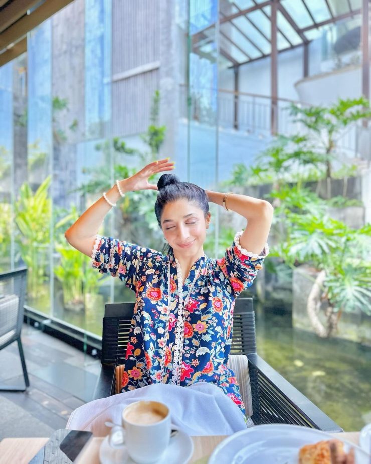 Mawra Hocane is currently enjoying a luxurious vacation in Bali, Indonesia. Her stay at a beautiful resort has been filled with blissful moments in a dreamy location. Through her posts, Mawra provides insights into the stunning Ayana Resort in Bali. Sharing pictures featuring a floating breakfast and scenic sunset with friends Komal and Sarah, the actress offers a daily glimpse into her luxurious getaway. In today’s post, she graces a gorgeous Shalwar Qameez dress, adding to the charm of her Bali adventure.