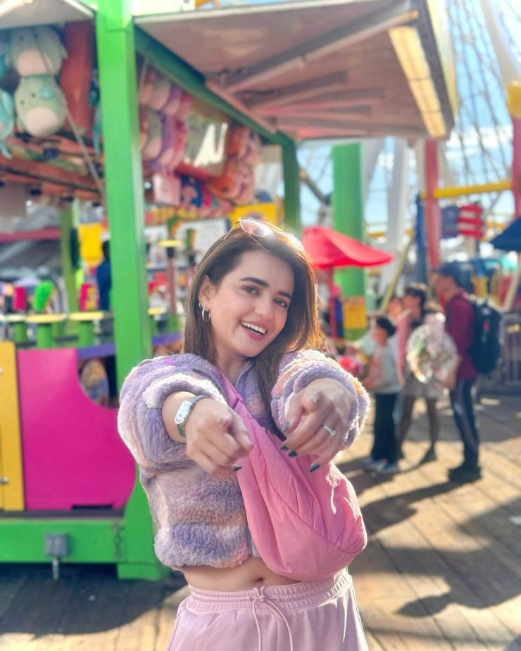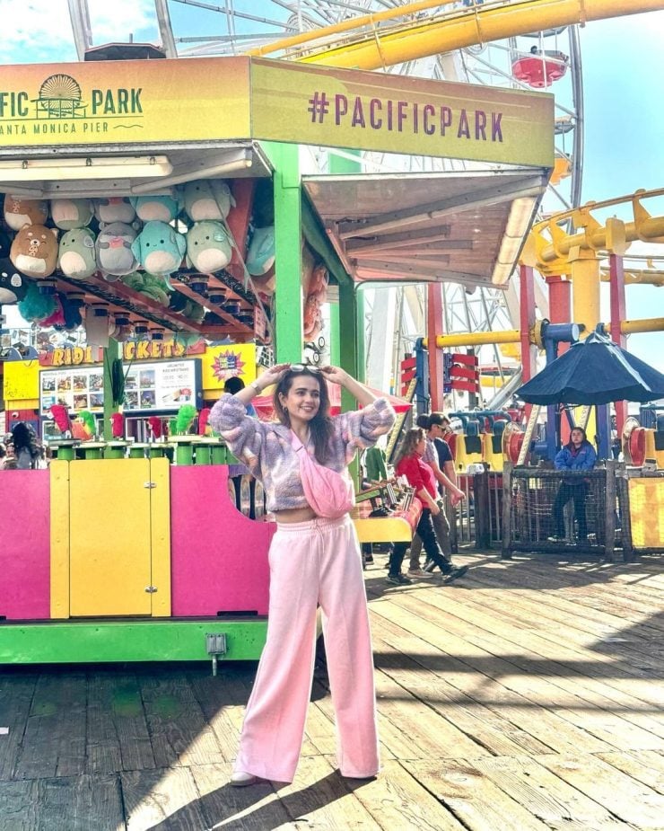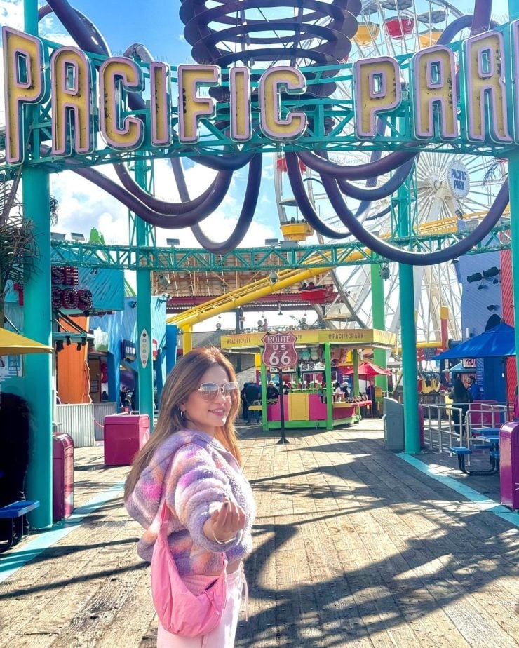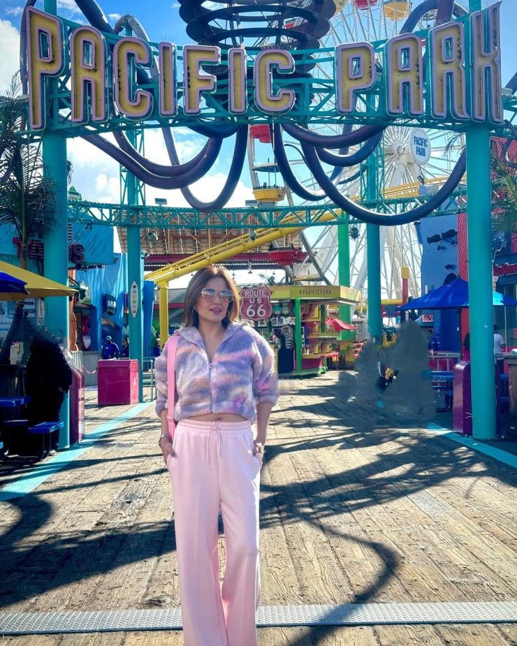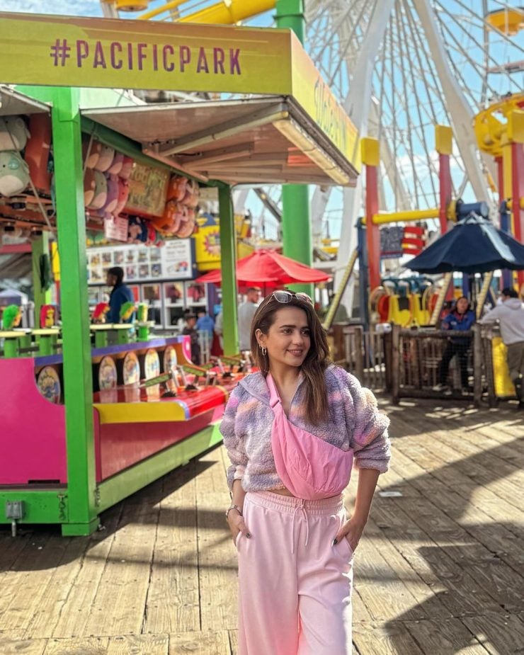Presently in the USA, the actress is exploring different areas and recently visited Pacific Park. Known for her love of colors and adventures, Sumbul is often spotted at fun and vibrant locations. She shared pictures with her fans in her casual style during her visit.