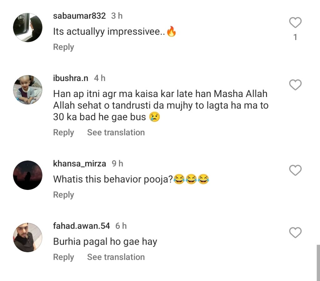 Fans are expressing mixed responses to her dance video, with many liking her dance moves and energy, while others criticizing her. Some social media users wrote harsh comments as well. Iffat Omar responded fittingly to the harsh comments.