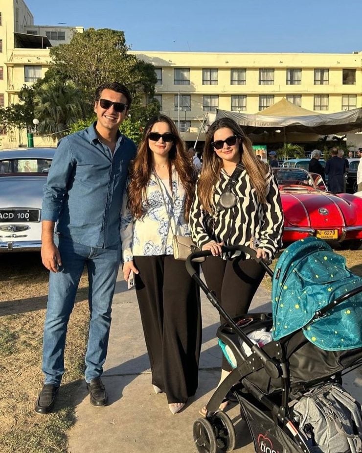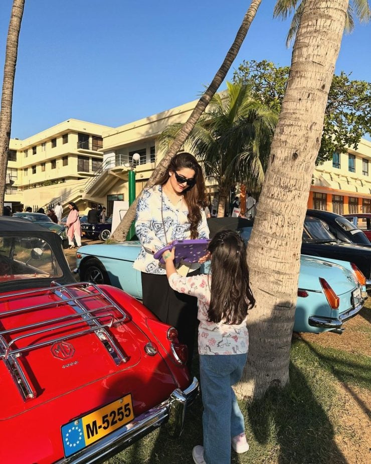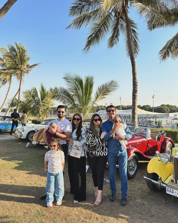 Ahsan Mohsin Ikram organized the car show, and the entire family, including Muneeb Butt, Aiman Khan, and their daughters, participated in the event. Some cool family clicks emerged from the event and were shared by all the stars.