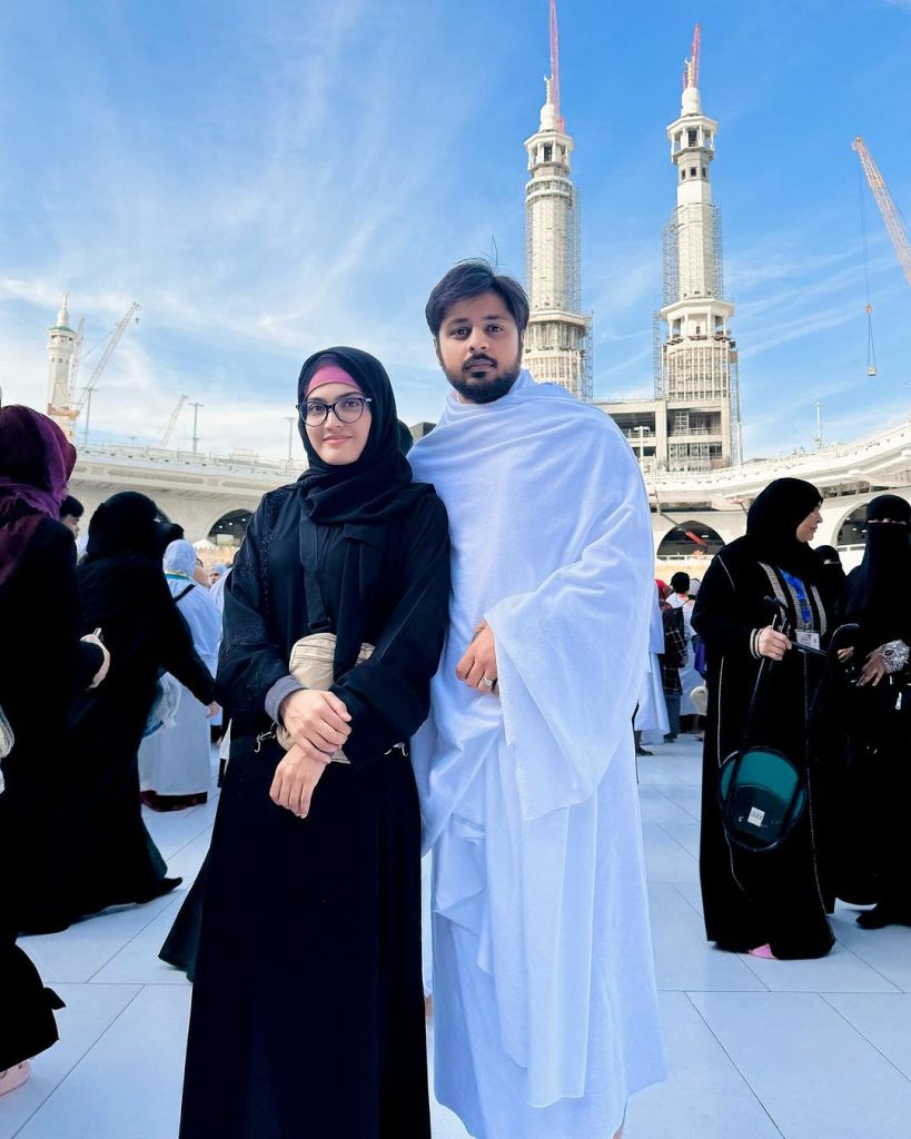 Now in Saudi Arabia, Iqra and Areeb are performing their first Umrah together as a married couple. They happily shared their beautiful experience, and Areeb, as part of the Umrah rituals, shaved his head and excitedly showed his new look to their fans.