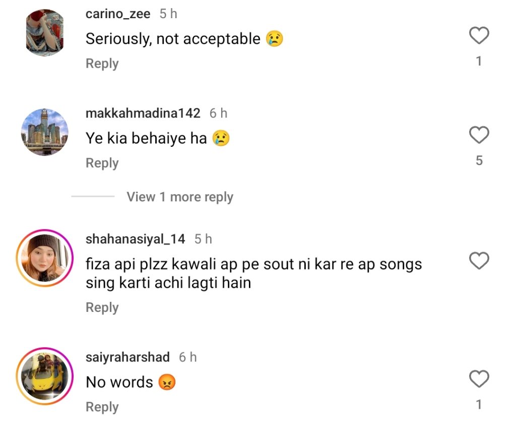 Fans expressed their dissatisfaction with Fiza Ali’s Qawali recitation, expressing anger towards her style. They also criticized Fiza Ali for not properly covering her head.