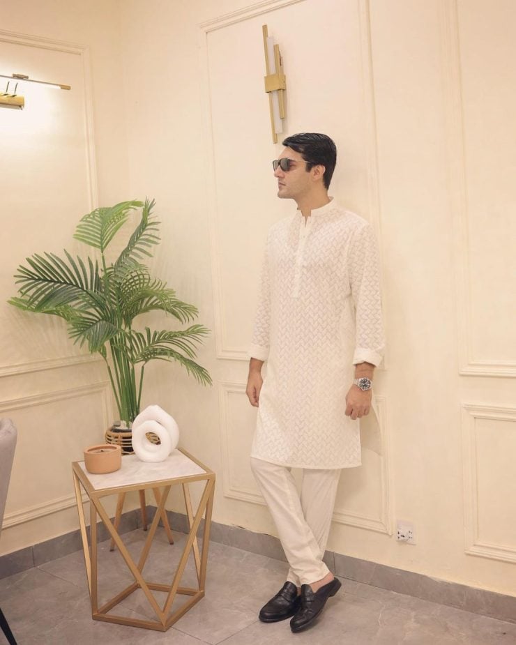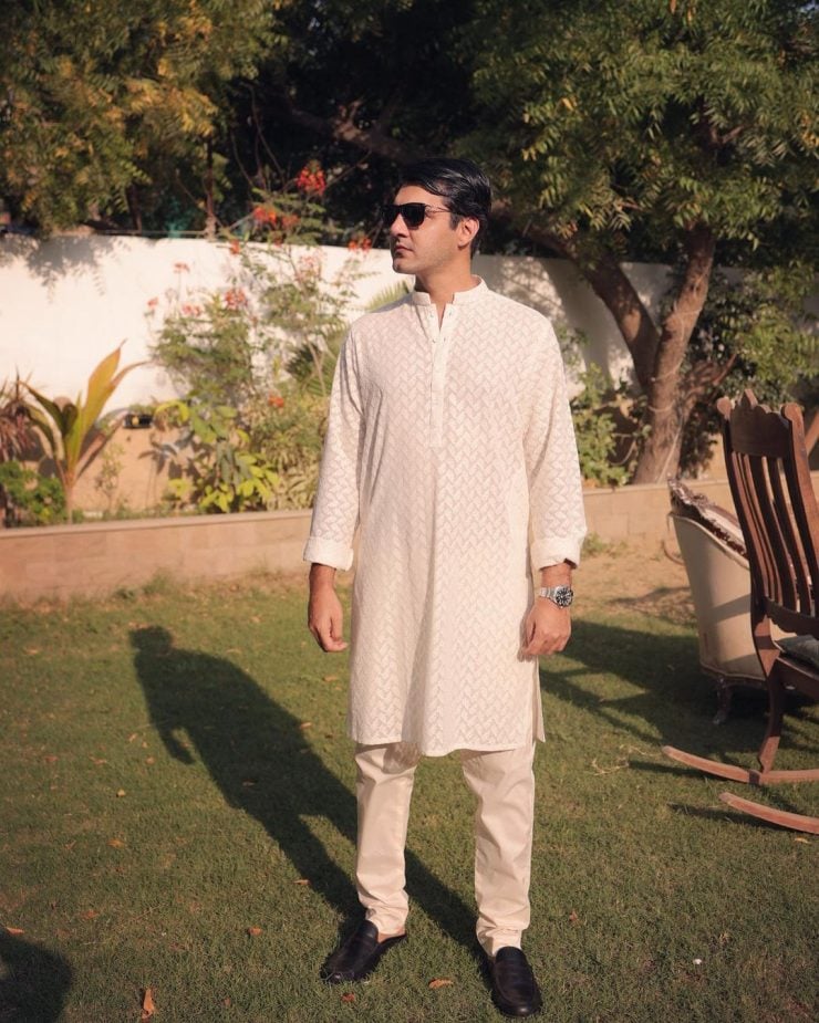Minal Khan and Ahsan Mohsin Ikram cherish spending time with their little ones. Today, the beautiful couple shared their Eid pictures along with their son, marking his first Eid Ul Fitr celebration.