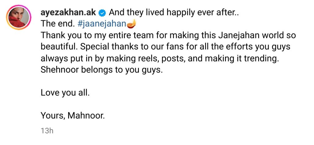 Ayeza Khan Thanks ‘Jaan e Jahan’ Fans for Their Love