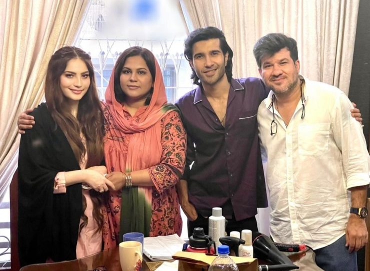 After the last episode of the drama serial Khumar, both actors have been sharing their exclusive pictures with fans. Neelam Muneer Khan also thanked the whole team and her fans for making the drama a successful venture. She shared a beautiful thread of unseen BTS pictures with Feroze Khan and other team members of the drama serial Khumar. Feroze also shared the BTS pictures on various occasions. We have gathered the adorable pictures for you.