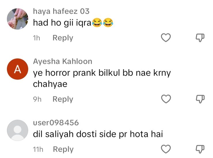This is how people react to the prank, criticizing Iqra for its potential danger, as such a prank can prove fatal for people, and she should have been more careful.
